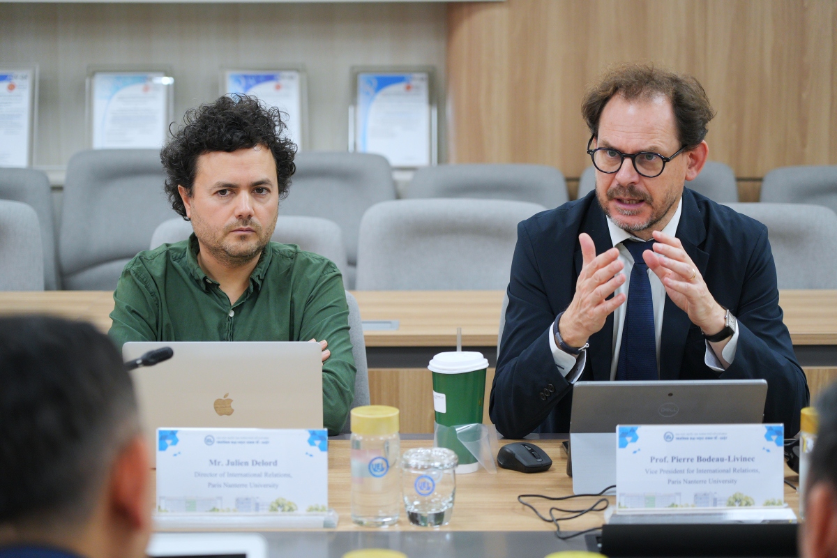 Chia sẻ tại buổi gặp, GS Piere Bodeau-Livinec – Phó Hiệu trưởng, phụ trách Hợp tác Quốc tế nhấn mạnh đây là buổi gặp gỡ quan trọng, thể hiện mong muốn thiết lập mối quan hệ đối tác nghiêm túc, lâu dài giữa Paris Nanterre và UEL. GS Piere kỳ vọng hai bên sẽ cùng phát triển các hướng hợp tác đa dạng, từ xây dựng chương trình đào tạo đến triển khai hiệu quả các hoạt động trao đổi giảng viên – sinh viên trong thời gian tới.